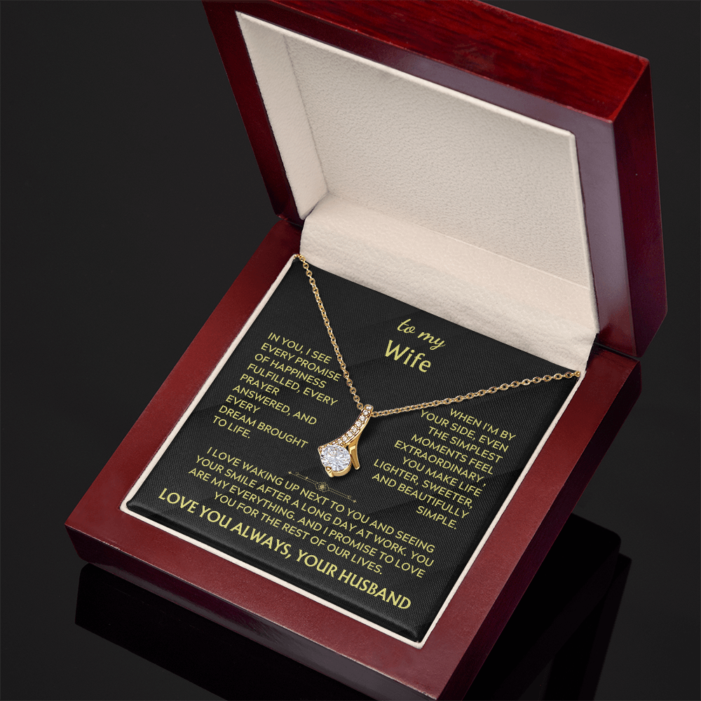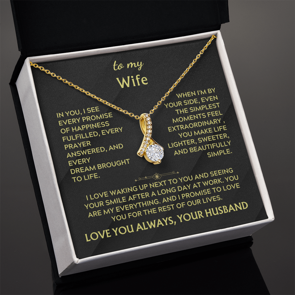 Imagine her reaction when she opens this stunning gift! The Alluring Beauty necklace features a petite ribbon shaped pendant that is sure to dazzle your special someone. Whether it's a birthday or anniversary, make sure to get her a gift she will love for years to come.